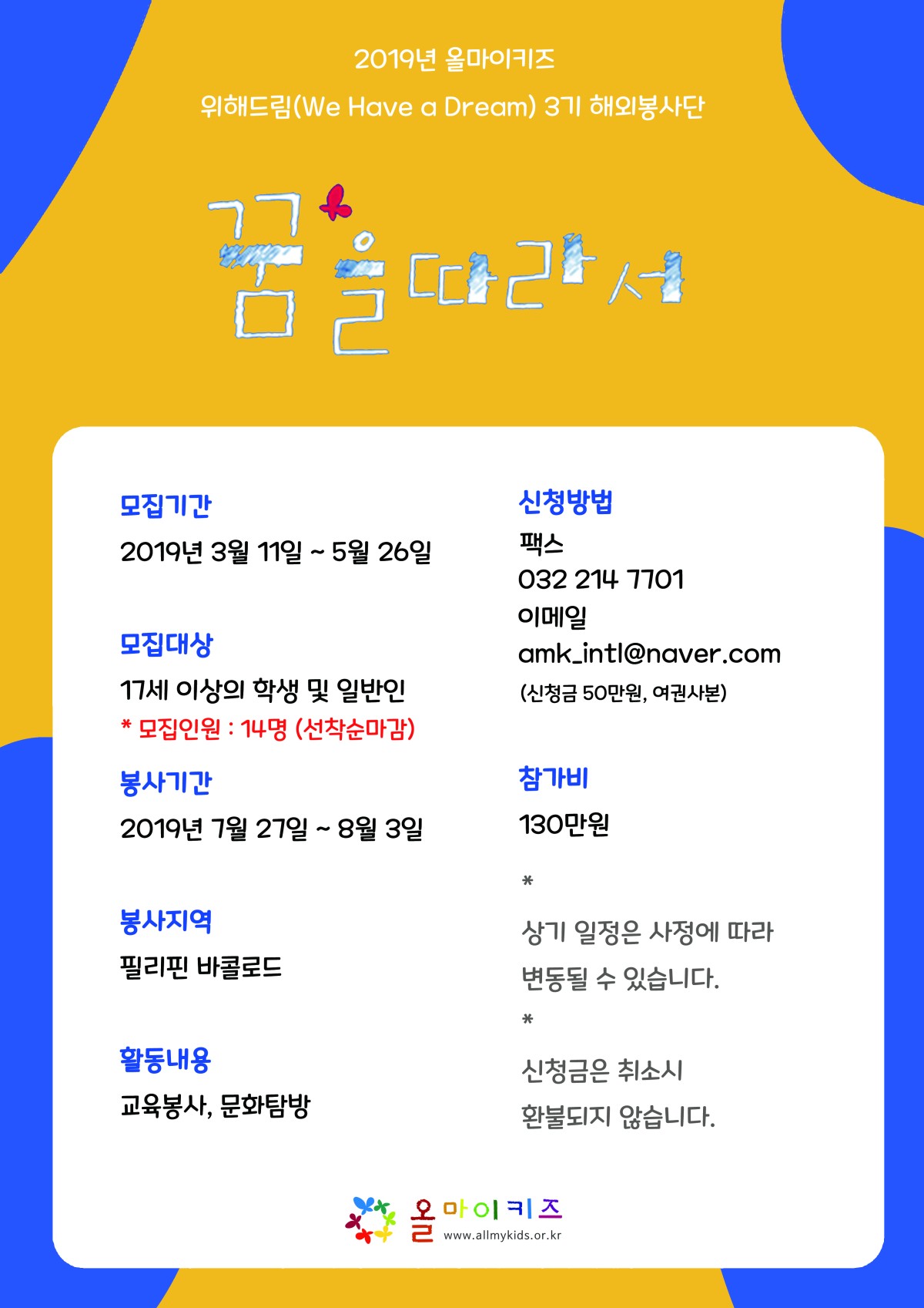 2019 올마이키즈 위해드림 해외봉사단 모집