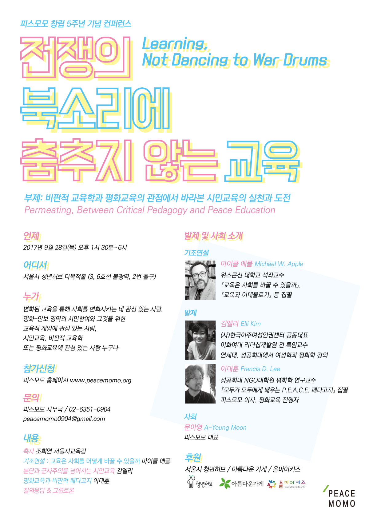 비판적 교육학과 평화교육의 관점에서 바라본 시민교육의 실천과 도전이라는 부제로 개최되는 피스모모의 국제컨퍼런스에 올마이키즈가 함께합니다.